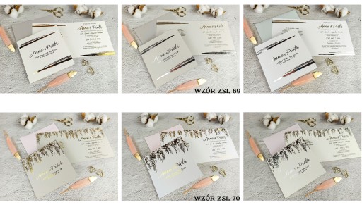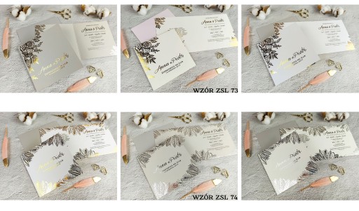 - złocona okładka jak i środek zaproszenia na kolor złoty lub srebrny