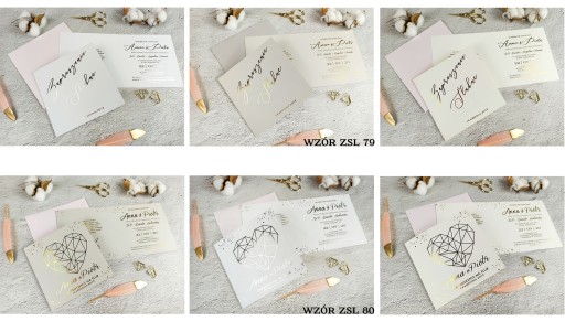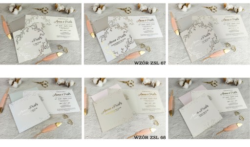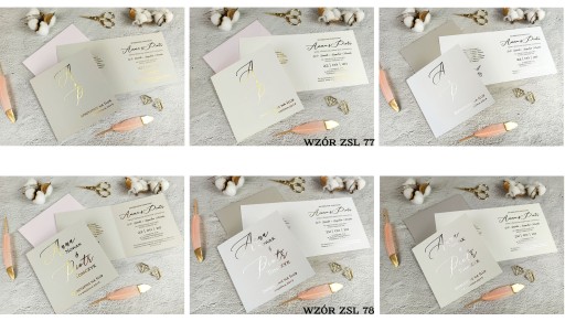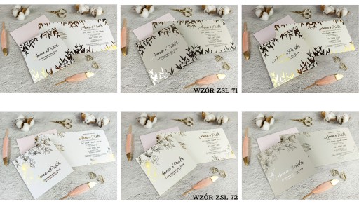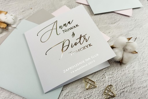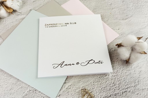 - format zaproszeń 14 cm x 14 cm (po rozłożeniu 14 cm x 28 cm)