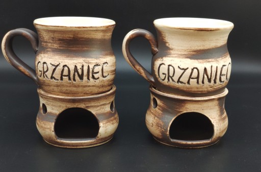 Przedmiotem sprzedaży na tej aukcji są dwa kamionkowe Kubeczki z Podgrzewaczami o pojemności około 250 ml każdy.