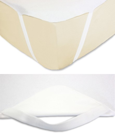 Podkład posiada wszyte na rogach praktyczne, grube i elastyczne gumy służące do wygodnego przymocowania do materaca. Dzięki temu ochraniacz nie przesuwa się podczas snu.