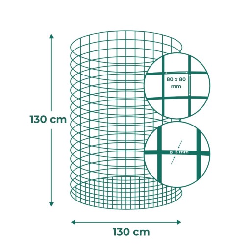 Do wszystkich siatek na siano typu BALOT na etapie produkcji dodajemy wymiar 30 cm do wysokości co daje średnicę 130 cm x wysokość 160 cm. Po zaciągnięciu sznurka otrzymujemy określony wymiar - średnica 130 cm x wysokość 130 cm