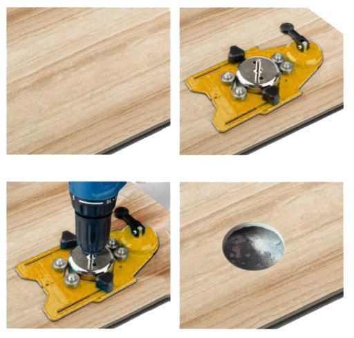 Prowadnica ułatwiająca wykonywanie otworów za pomocą otwornic, koronek i wierteł w płytkach ceramicznych, gresie, glazurze, szkle i innych materiałach.