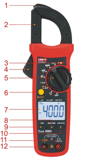 Wielofunkcyjny cęgowy miernik prądu, napięcia, NCV