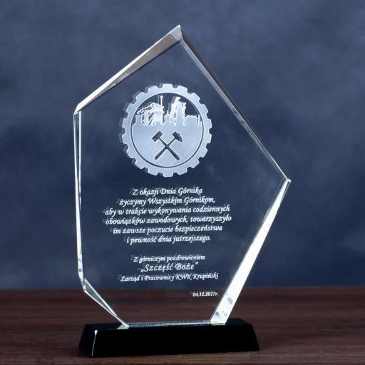 Kryształowa pamiątka dla górnika z DEDYKACJĄ