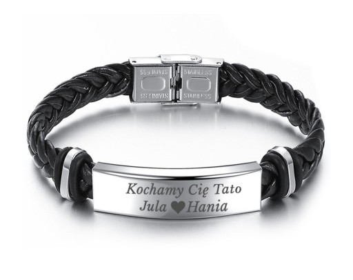 Prezentujemy Państwu nowość w naszej ofercie biżuterii. Bransoletka wykonana ze skóry oraz blaszki ze stali szlachetnej antyalergicznej. Na blaszce w cenie zakupu otrzymujecie Państwo możliwość wykonania dowolnego grawerunku. Grawerowanie wykonywane jest metodą laserową która gwarantuje wysoką dokładność oraz trwałość dzięki czemu tekst jest czytelny.