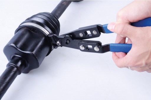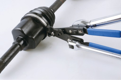 Specjalistyczne wzmocnione szczypce służące do montażu i demontażu opasek zaciskowych typu CV BOOT CLAMP oraz EAR CLAMP występujących na przegubach, przewodach podciśnienia oraz na przewodach układu chłodzenia. Specjalne otwory w rękojeści umożliwiają wykorzystanie pokrętła 1/2" w celu zwiększenia siły dociskowej szczypiec. Część chwytna szczypiec posiada szczęki w kształcie haka co umożliwia utrzymanie opaski w jednym położeniu. Wydłużona konstrukcja szczypiec pozwala na pracę w miejscach trudno dostępnych. Rączki pokryte antypoślizgowym tworzywem sztucznym, które zapewnia większy komfort pracy oraz wpływa na lepszy chwyt narzędzia.