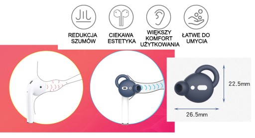 NAKŁADKI GUMKI REDUKCJA SZUMÓW APPLE AIRPODS 1/2