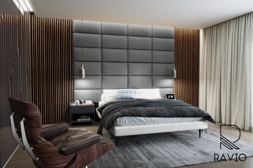 - Panele tapicerowane świetnie sprawdzą sie jako elementy wygłuszające pomieszczenie, dodatkowo sprawią, że stanie się ono bardziej przytulne.