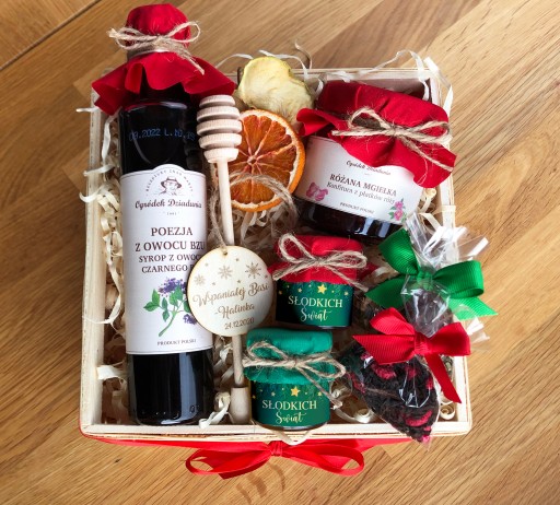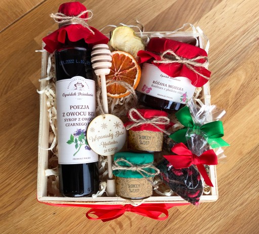 Wyjątkowy kosz wypełniony naturalnymi delikatesami wysokiej jakości z Twoją grawerowaną dedykacją.