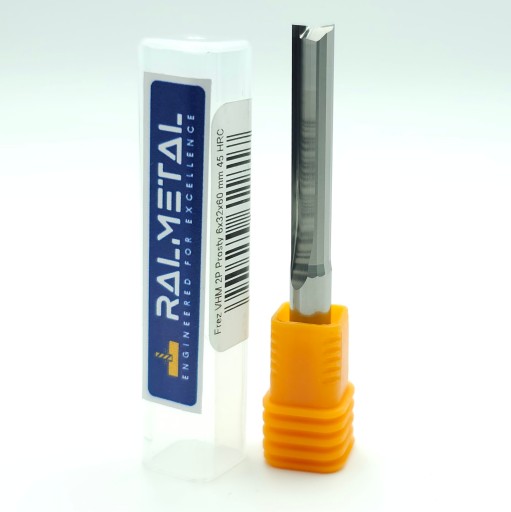 Frez węglikowy VHM 2 - piórowy / ostrzowy, prosty. Fi. 6 mm 45 HRC do drewna, sklejek, kompozytów, pianek, styroduru itd.