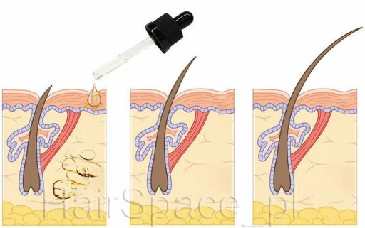 - rewitalizację mieszków włosowych i spowodowanie ich przejścia z fazy uśpienia do fazy aktywnego wzrostu
