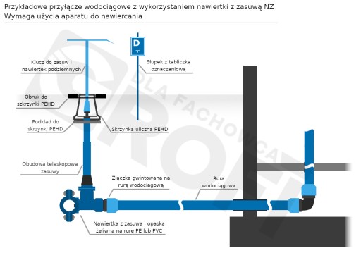 Jest podstawowym elementem armatury przyłącza wodociągowego. Służy do wykonywania przyłączeń instalacji domowych do sieci wodociągowej wykonanej z rur PVC i PE bez użycia dodatkowego oprzyrządowania. Wcięcia dokonać można na pracującej sieci wodociągowej.