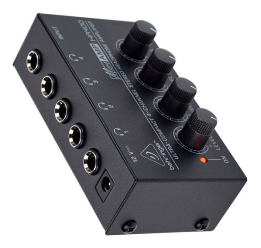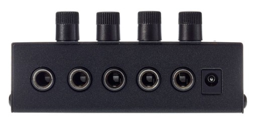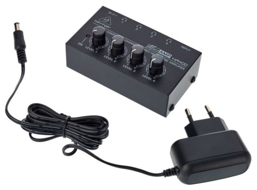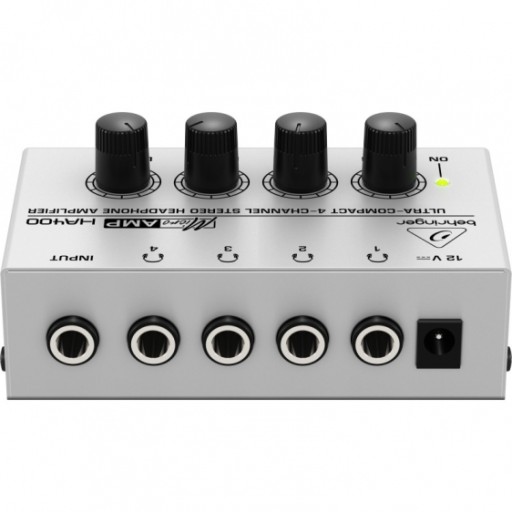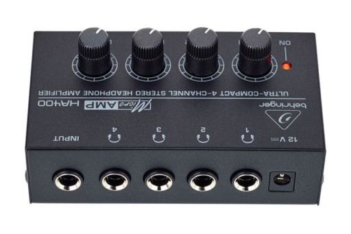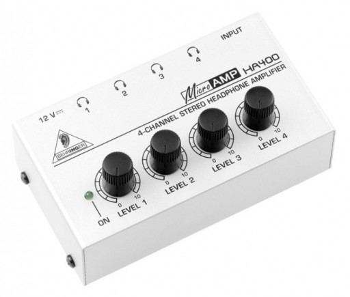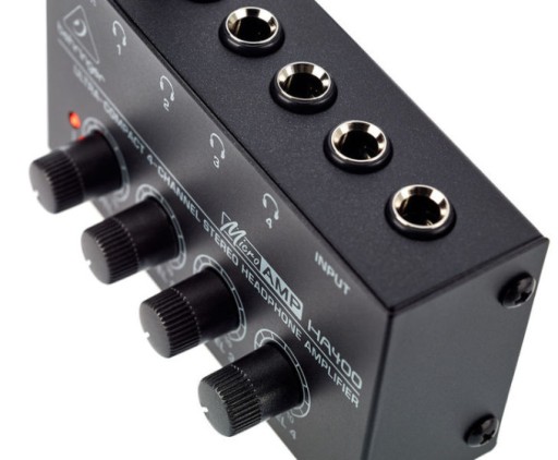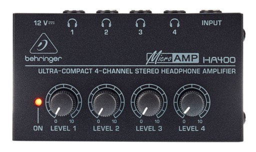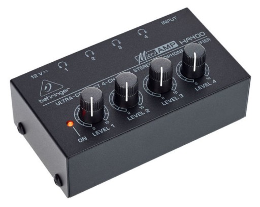 Behringer MICROAMP HA-400 to urządzenie, do którego możemy podłączyć 4 pary słuchawek i niezależnie sterować głośnością każdej z nich. Niezwykle przydatny sprzęt do studia, przy nagrywaniu chórków, jak i na próby, gdzie każda z osób potrzebuje indywidualnego poziomu głośności sygnału wjeściowego.