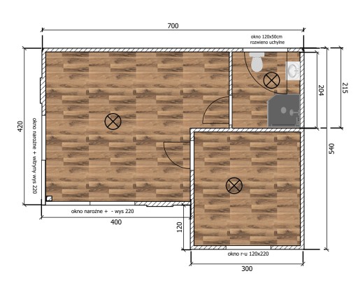 - 2 x drzwi wewnętrzne (łazienka + pokój)