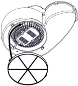 Schemat montażu filtra jest przedstawiony obok,należy go montować na turbinie okapu zakręcając go w odpowiednie kanały,zgodnie z instrukcją obsługi okapu.