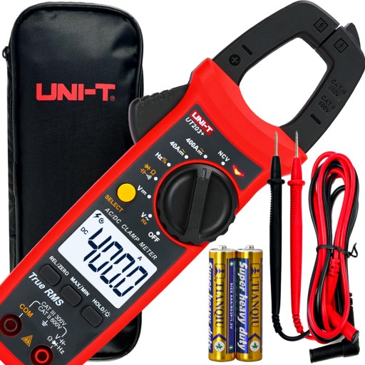 - Pomiar natężenia prądu AC/DC: 40A / 400A