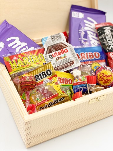 *Zawartość pudełka (czekolady, cukierki, żelki itp.) nie wchodzą w skład oferty - jest to przykładowa aranżacja.