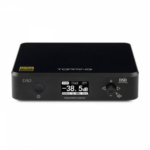 USB w D50s wspiera DSD64-DSD512 i PCM 16bit/44.1kHz - 32bit/768kHz. Porty optyczne i koaksjalne charakteryzują się obsługą PCM do 24bit/192kHz i DOP DSD64.