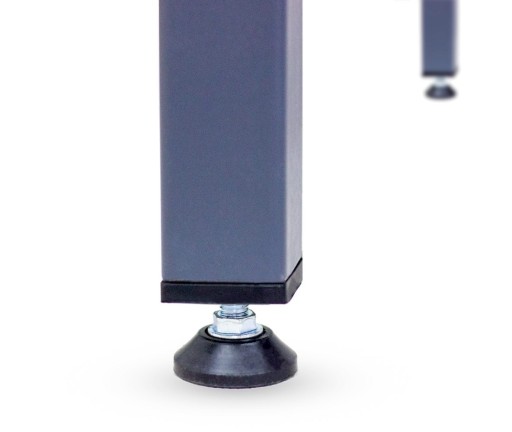Posiada gumowe stopki, które zapobiegają jego przesuwaniu się, amortyzują drgania oraz umożliwiają regulację wysokości.
