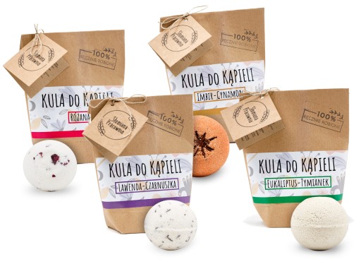 Zestaw składa się z 4 ręcznie robionych kul kąpielowych o wadze 70g.
