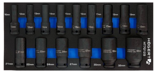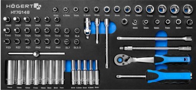 Zestaw zawiera: nasadki HT1A210-HT1A236, grzechotka 1/2” HT1R322, pokrętło 254 mm HT1A727, przedłużka 1/2” 127 mm HT1A724, przegub 1/2” HT1A757