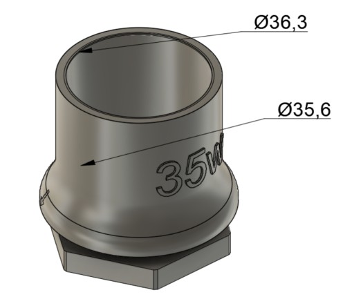 Zaprojektowany kształt adaptera daje nam pewne widełki, jeżeli chodzi o potrzebną otwornicę. Otwór nie może być jednak mniejszy niż Ø35, ponieważ wtedy nie zmieści się adapter.