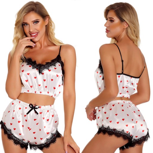 ZMYSŁOWA DWUCZĘŚCIOWA PIŻAMKA OZDOBIONA CZARNĄ KORONKĄ