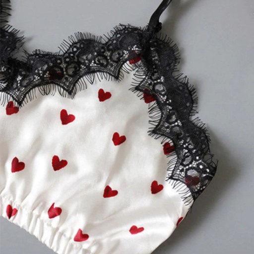 ZMYSŁOWA DWUCZĘŚCIOWA PIŻAMKA OZDOBIONA CZARNĄ KORONKĄ
