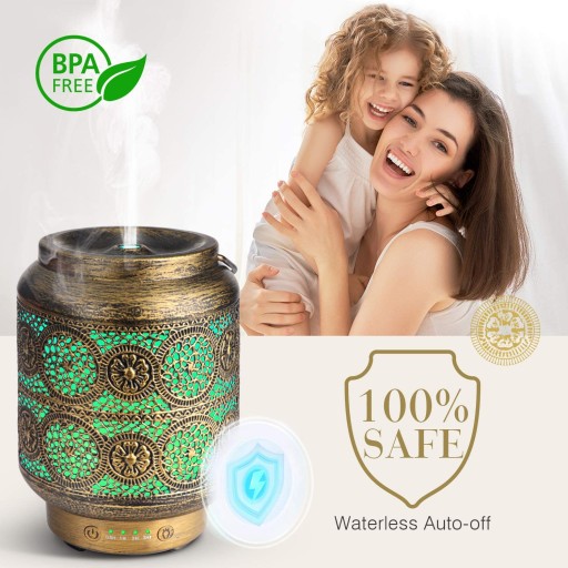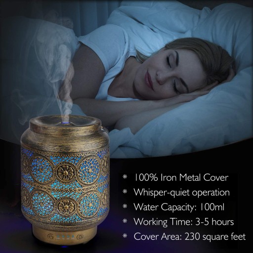 SALKING Metal Essential Oils Diffuser,100ml Vintage Aromatherapy Diffuser Ultrasonic Oil Diffusers Humidifier with 7 Colour Night Light, Waterless Auto Shut-Off, Timer for Home Bedroom