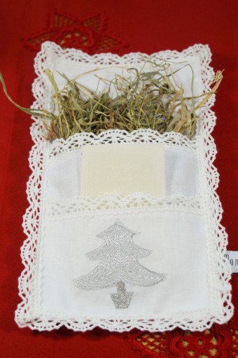 i co z tym siankiem zrobić? Niejedna gospodyni przygotowująca tę najważniejszą wieczerzę zastanawia się nad tym pytaniem... W odpowiedzi na to wyzwanie, Monart stworzyło piękną, elegancką poduszeczką na sianko i opłatek! Poduszeczka na sianko ma kształt prostokąta (ok.15x25 cm).