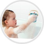 Wiaderko bez otworów - pozwala na przelewanie wody oraz umożliwia spłukiwanie włosów dziecka.