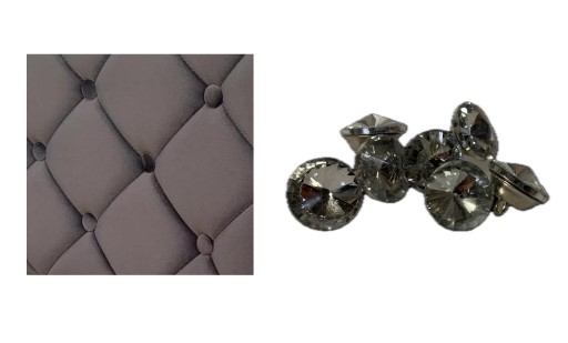 Wzór pikowany pozwala nam na wybór pomiędzy pikowaniem guziczkami w kolorze pufy, guziczkami w innym kolorze, lub zastąpieniem guziczków cyrkoniami:
