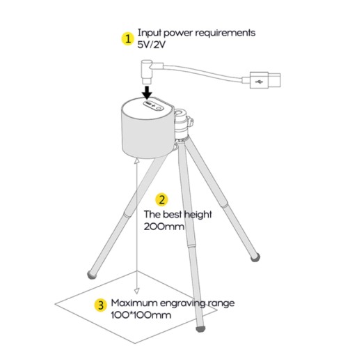 Mała, lekka grawerka 190g, łatwa do przenoszenia. Wysokiej jakości głowica laserowa, oryginalny niebieski laser firmy Osram z Niemiec, żywotność ponad 10,000 godzin. Multi-angle, grawerowanie z regulowanym statywem do grawerowania produktów na dowolny kąt i wysokość. Moc lasera: 1.6W. Obszar grawerowania: 10 * 10 cm. Tryb pracy: użyj mobilnej aplikacji na telefon, łatwa w obsłudze, możesz wybrać dowolny wzór, który chcesz wygrawerować. Materiały, które można grawerować: drewno, bambus, papier, plastik, skóra, guma, gąbka, grzebień, portfel lub inne palne tworzywo sztuczne (takie jak etui na telefon komórkowy, mysz, ołówek, wizytówka, portfel, plastikowy grzebień). Zasilanie: 5V 2A (komputer, urządzenie ładujące, ładowarka USB) do zasilania. Certyfikacja bezpieczeństwa: CE, FCC, FDA, RoHS, CDRH, IEC 60825-1 (poziom lasera 1), IEC 60825-1 (poziom lasera). Obsługiwane formaty obrazu: obsługiwane są JPG / BMP / DIB / ICO / CUR / PNG/ g-code / SVG i inne formaty. Może grawerować na zakrzywionych przedmiotach.
