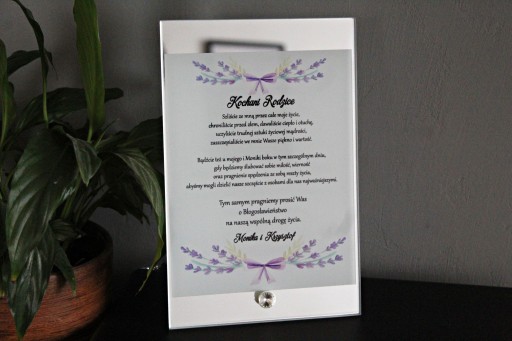 Prośba o Błogosławieństwo na szkle z lustrem wokoło. Piękny tekst z dekoracjami.