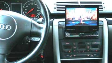 w miejscu fabrycznego radia AUDI (model 1DIN - jak na foto).