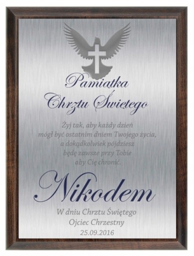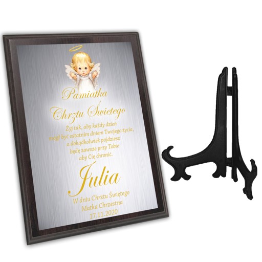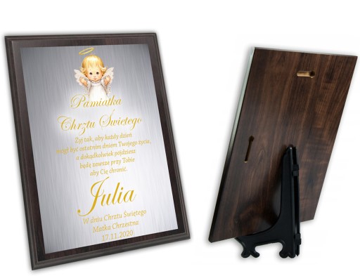 Doskonały prezent na Chrzest Święty w postaci drewnianego panelu wraz z dedykacją i imieniem dziecka.