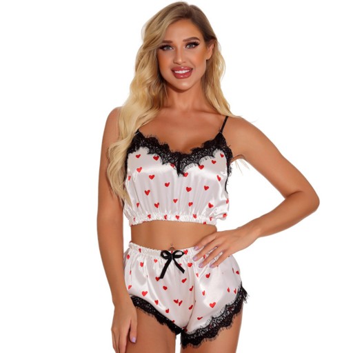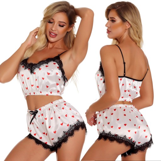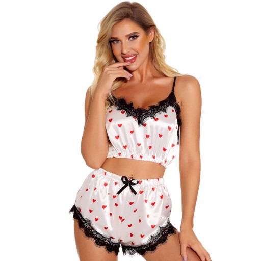 КОМПЛЕКТ НОЧНОЙ АТЛАСНОЙ ХИМИИ С КРУЖЕВНЫМИ ШОРТАМИ СЕРДЦЕ