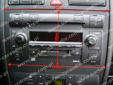 Ramka przeznaczona do montażu standardowego radioodtwarzacza o znormalizowanym wymiarze 1DIN (SONY, PANASONIC,BLAUPUNKT, CLARION, BLAUPUNKT, JVC, PIONEER itd.) w miejsce fabrycznego radia w samochodach marki AUDI