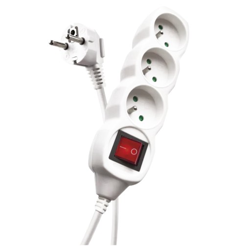 Przedłużacz z wyłącznikiem i uziemieniem 3 gniazda 5m biały
