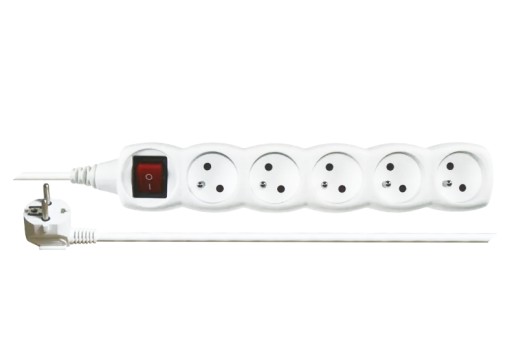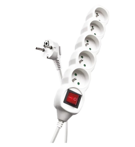 Przedłużacz z wyłącznikiem i uziemieniem 5 gniazd 5m biały