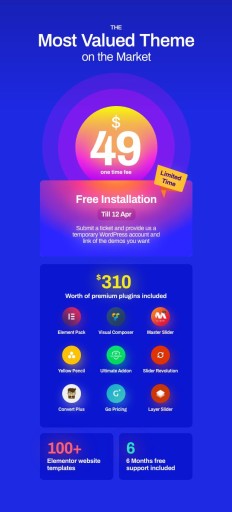 Phlox to najlepszy uniwersalny motyw Elementora, jaki kiedykolwiek widziałeś. Ma ponad 80 wersji demonstracyjnych Compelete Elementor, które można po prostu importować i edytować w Elementorze.Stwórz swoją witrynę taką, jaką lubisz, jeszcze bardziej konfigurowalną dzięki elementarnemu narzędziu do tworzenia stron lepszym niż jakikolwiek dostosowywalny motyw Wordpress dostępny na rynku, istnieje 160 elementów dostępnych dla Elementora, masz pełną kontrolę nad dowolnymi pikselami swojej witryny . Phlox ma ponad 90 szablonów Elementora