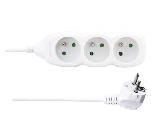 Przedłużacz z uziemieniem 3 gniazda 3m biały