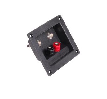 Terminal głośnikowy montowany w kolumnach głośnikowych z tyłu obudowy służy do podłączenia ich za pomocą przewodów głośnikowych do wzmacniacza lub amplitunera. Terminal na tej aukcji umożliwia podłączenie kolumn za pomocą "gołych" przewodów lub zakończonych wtykami babanowymi jak również wtykami duży jack
