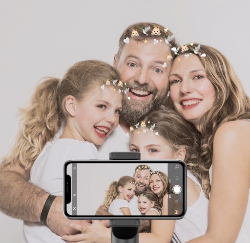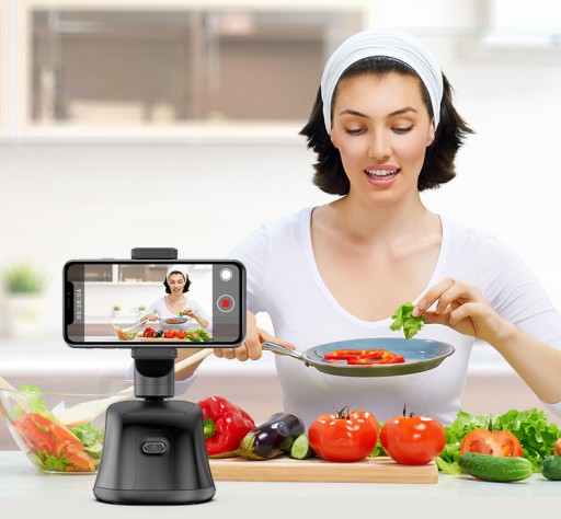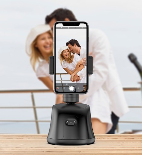 Uchwyt umożliwia nagrywanie lub nadawanie transmisji na żywo na dowolnej platformie np. facebook, instagram itp. obracając automatycznie smartfona w taki sposób, aby kamera była zawsze skierowana w Twoją stronę.