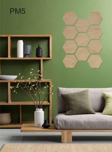 Naklejka, OZDOBA, dekoracja 3D DREWNIANA, GRUBOŚĆ 4mm WZÓR PM5a plastry miodu HEKSAGONY