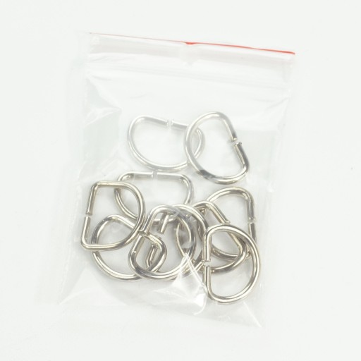 Półkółka kaletnicze o wymiarze wewnętrznym 18 mm wyprodukowane z drutu stalowego o średnicy 2,5 mm. Półkółka są pokryte powłoką galwaniczną w kolorze srebra (nikiel).