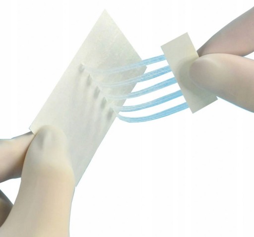 - mogą być stosowane samodzielnie jako pierwotne zamknięcie rany i zastąpić w części przypadków konieczność założenia tradycyjnego szwu skórnego