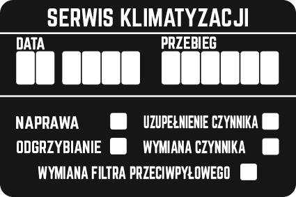NAKLEJKI SERWISOWE FOLIOWE: SERWIS KLIMATYZACJI 9 x 6 cm - 8 sztuk.