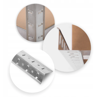 - zaokrąglone krawędzie - całkowicie wyklucza możliwość skaleczenia się podczas użytkowania regału.