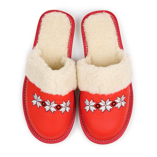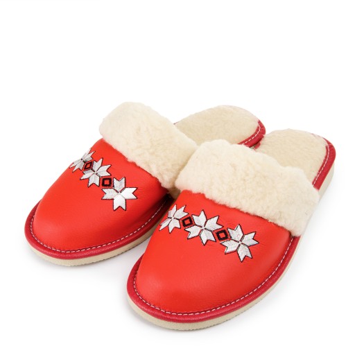 - Pantofle ozdobione są pięknym świątecznym haftem,